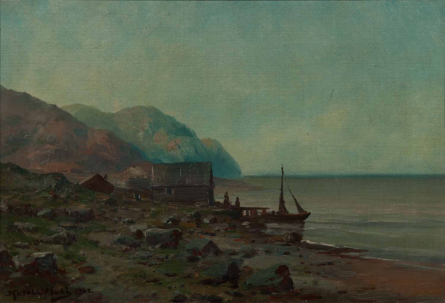 Harold Hall was born in Oslo, Norway in 1865 and emigrated in 1882. He was a panoramic painter in Milwaukee, Wisconsin at the turn of the 20th century, a time when this genre or industry in Milwaukee was largely dominated by German immigrant painters. While there, he was a member of the Society of Milwaukee Artists, which was formed in 1900 by several panoramic painters. By 1920 he was living in Seattle, Washington. He primarily did oil paintings and panoramic paintings as well as painted rural landscapes, historical panoramas, and large canvasses of religious subjects for churches. Hall died in Seattle, Washington in 1932.
